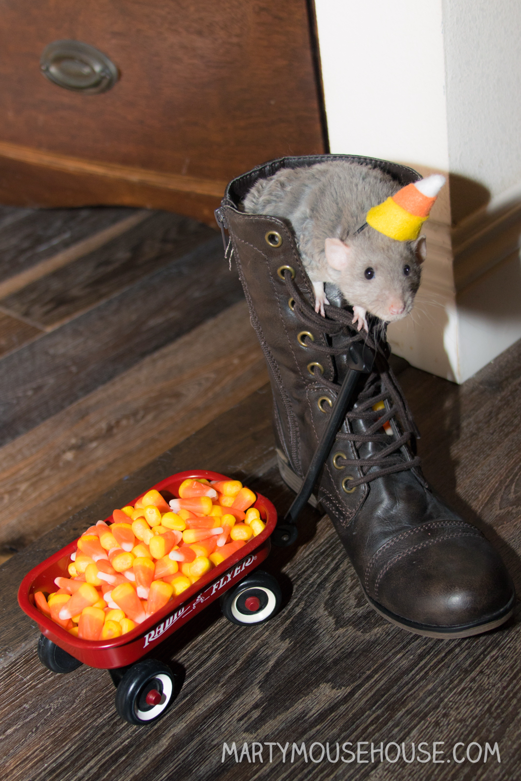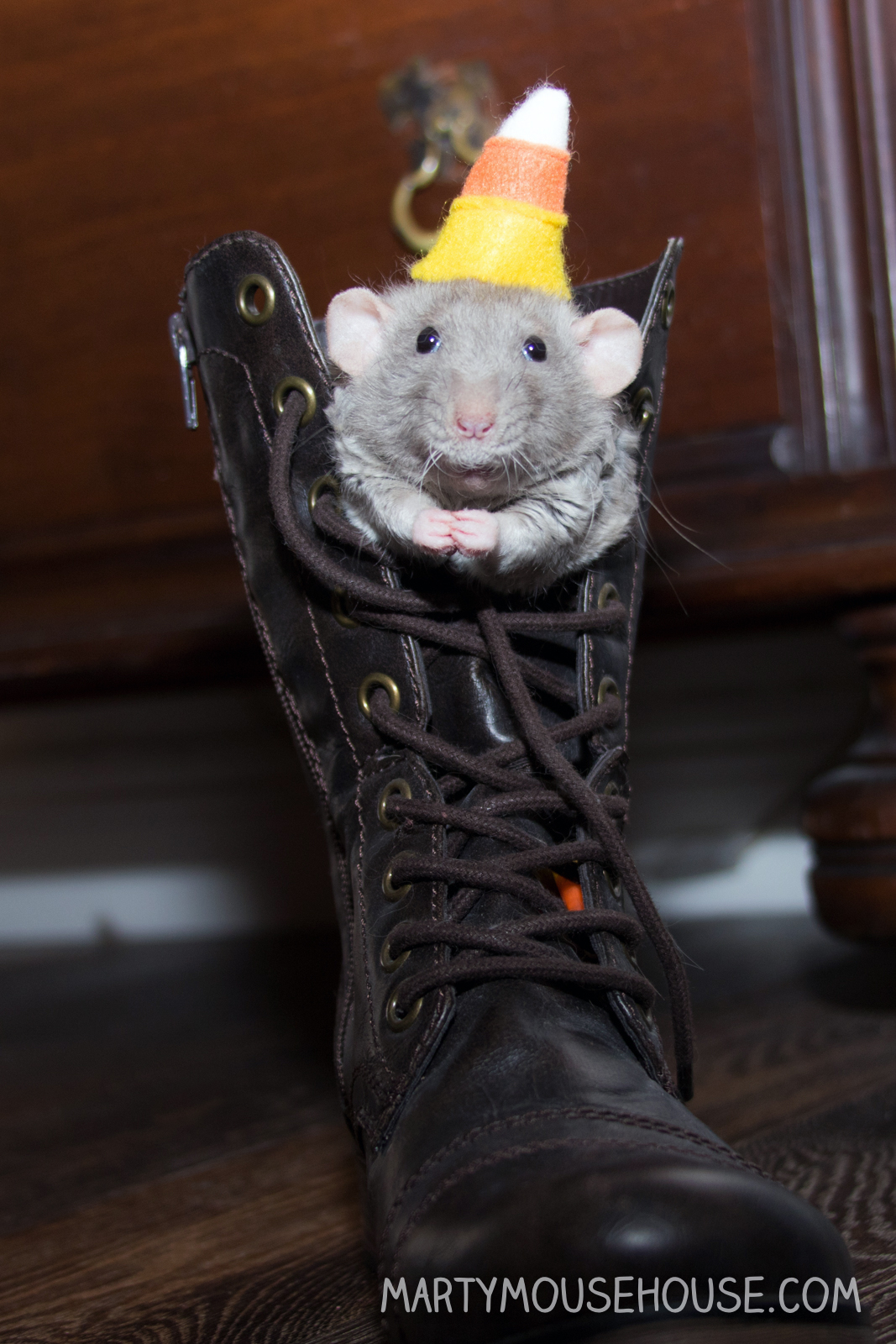 Tonight I was delibering a corm to dis boot here and had some trouble. I got a little stuck, and my foot was sticking out because the boot wasn’t zipped up – sometimes there are unforseen hazards ob the job, but I obercame the obstacle and got the job done and on to the next one… Halloweem is coming!!