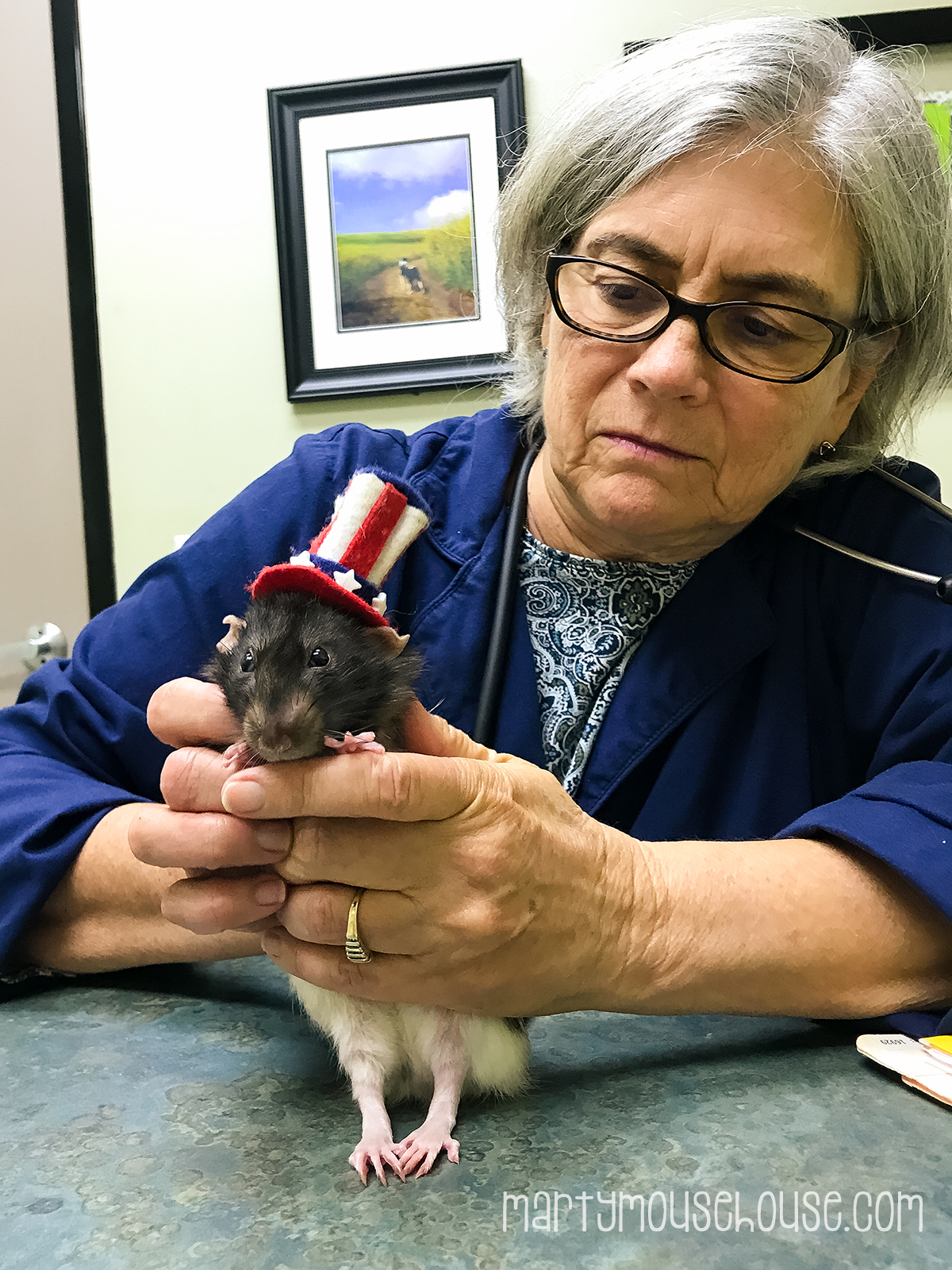 Yesterday I bisited my doctor for my Presidential check-up. The secret service swept the area and made sure eberyfing was safe – they had to clear out a few shady looking characters in the front office. I fink they got so focused on that, they forgot to warm up the stethoscope! I lub Dr. Peth, she takes good care ob me and I’m feeling pretty good for a old guy. I had a few sneezes so she gab me some medisin, but it’s not in my lungs, so dats berry good.