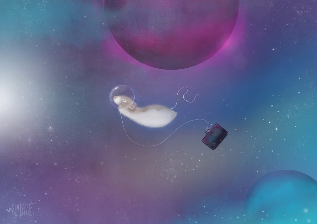 Hai! I’m in space just doing some space bizness stuff. I had to bring my Internashunal Bizness papers wiff me. Nadyart did dis picture ob me on my trabels, she added my inbisible space helmet so you can see what it looks like. Fanks Nadya!! You always make me look good. P.S. Dis Marty.