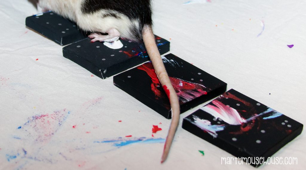 For the selected pieces (noted in the Facebook post) you can purchase one raffle tickets for a chance to win. You can purchase raffles tickets at the Store Ob Cute Fings – be sure to leabe a note stating painting you want your ticket to be entered for. There is one each by Cosmo, Augie and Bean.