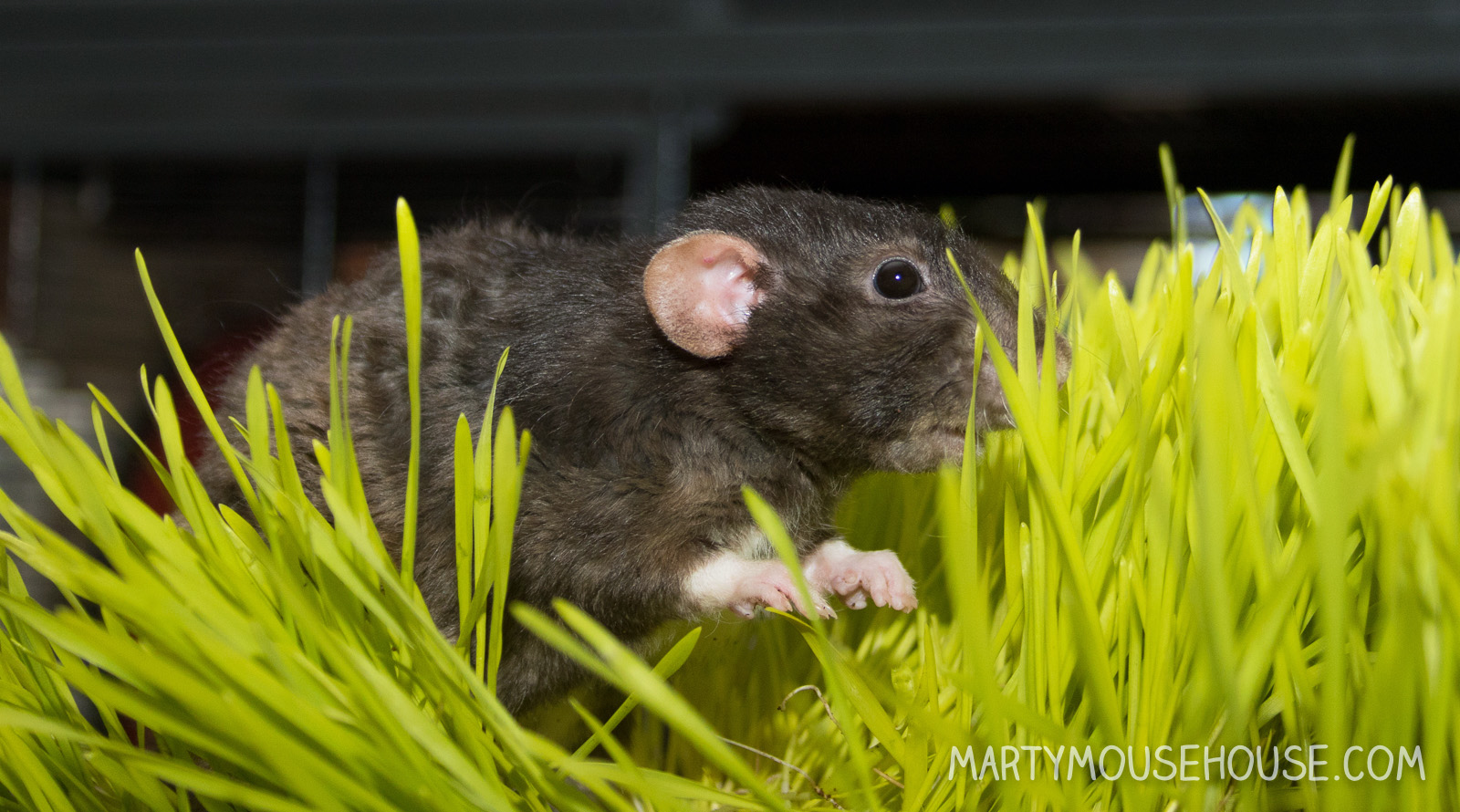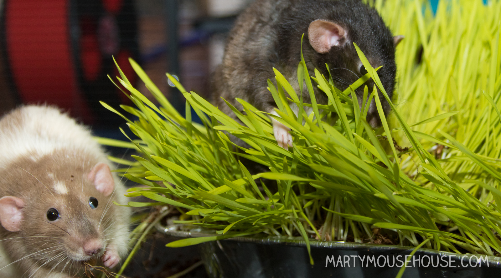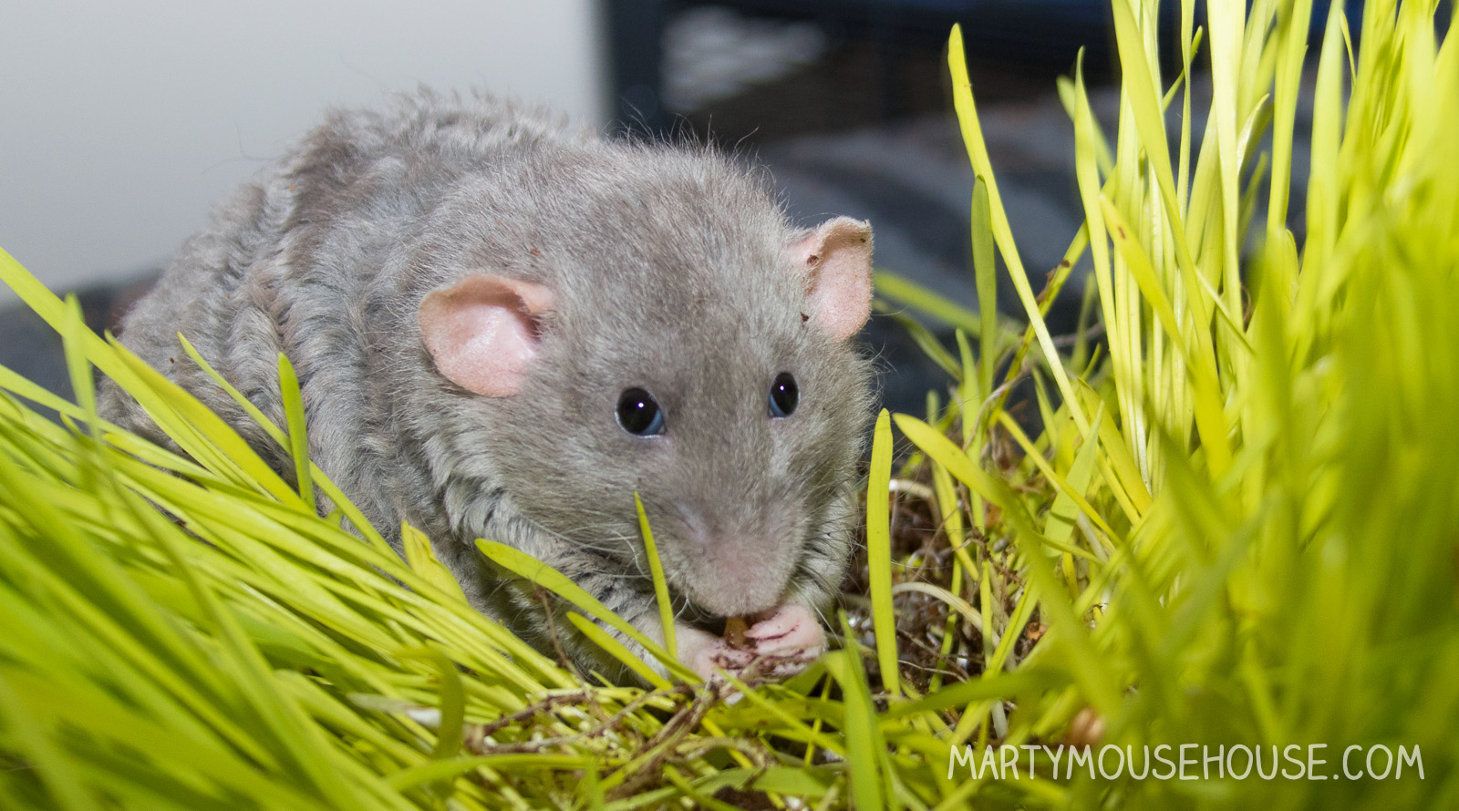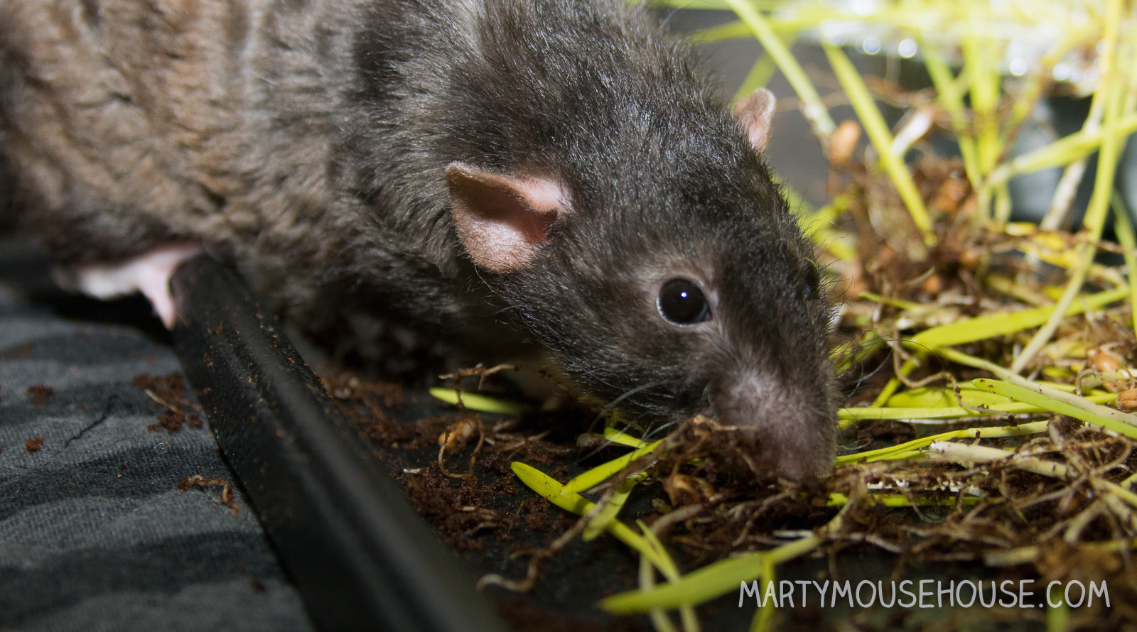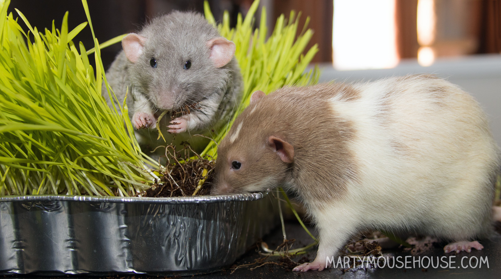 Last weekend our friend Pants at @RatsHaveFeelingsToo brought us a rooting box wiff wheat grass in it. We watered it for a few days and it grew real fast! Today we got to check it out and play wiff it…and eat stuff we dug up! It’s like we are farmers or somefing. Eben tho there was alot ob dirt, somehow we got away wiff not habbing a baff. Phew…. Fank you Pants – we had a great time wiff this!!