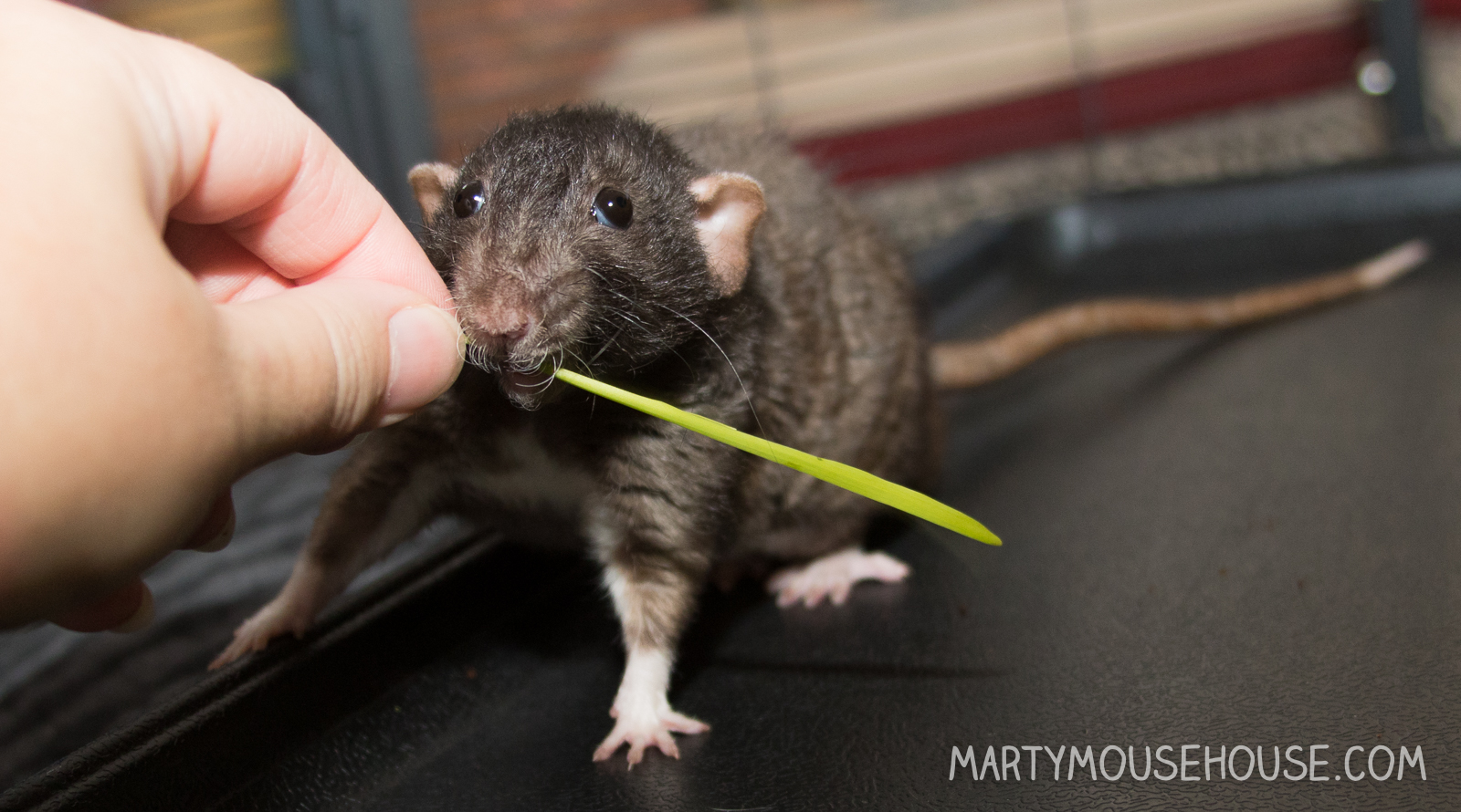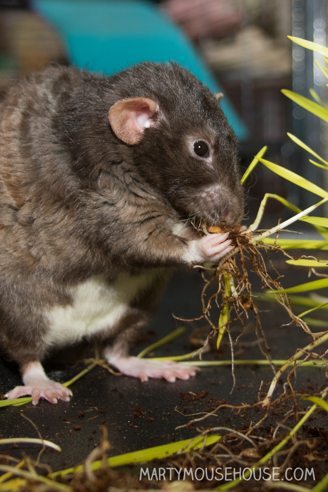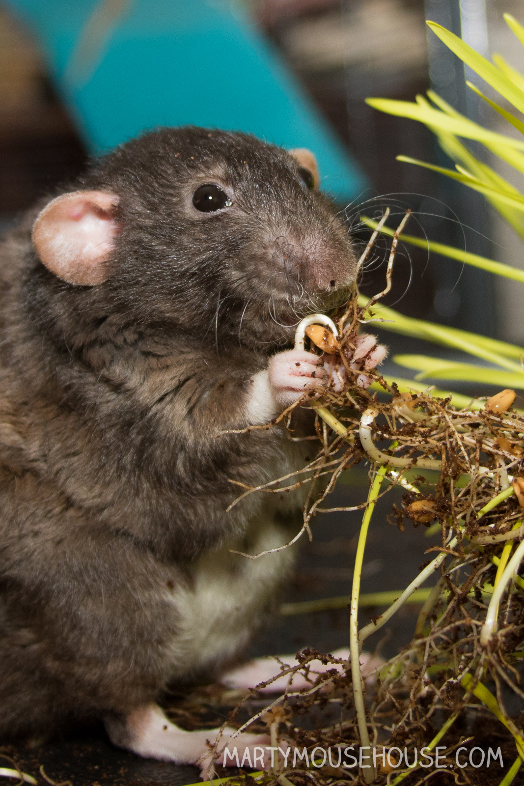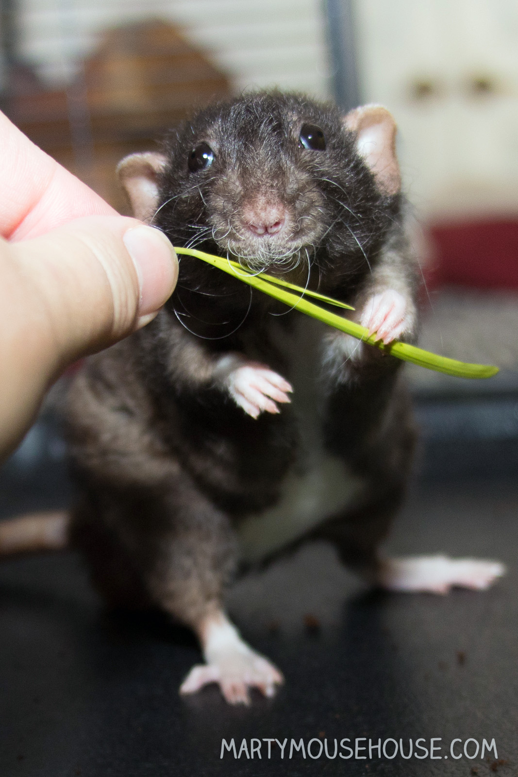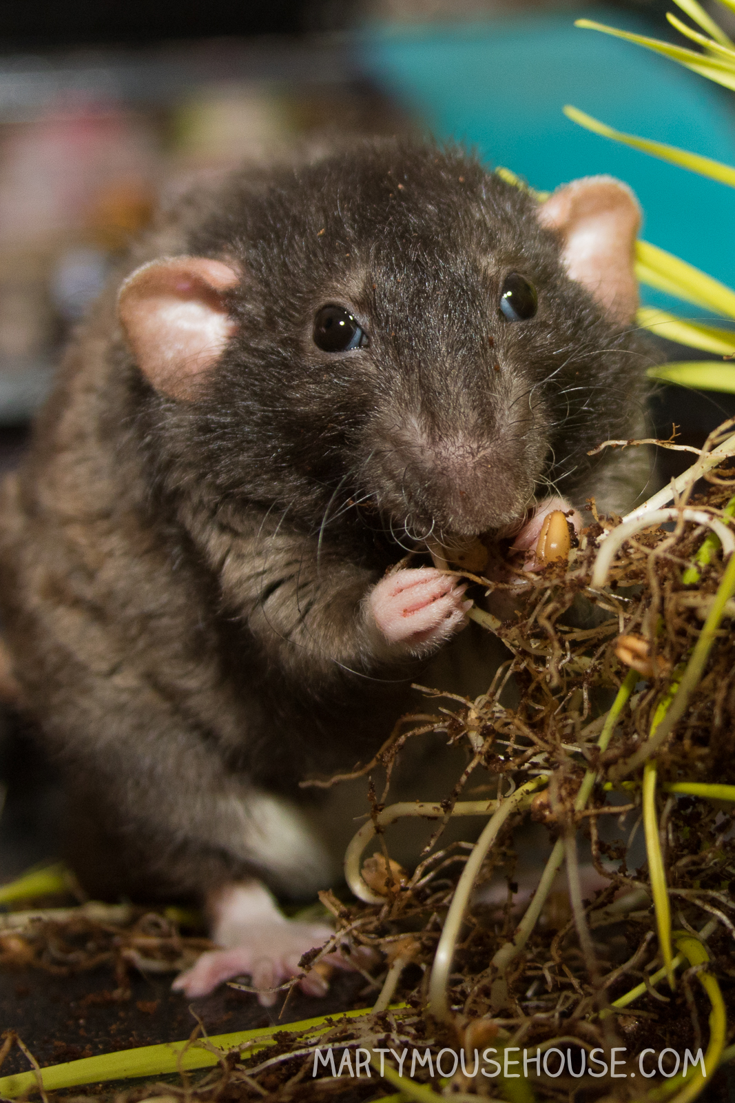 Last weekend our friend Pants at @RatsHaveFeelingsToo brought us a rooting box wiff wheat grass in it. We watered it for a few days and it grew real fast! Today we got to check it out and play wiff it…and eat stuff we dug up! It’s like we are farmers or somefing. Eben tho there was alot ob dirt, somehow we got away wiff not habbing a baff. Phew…. Fank you Pants – we had a great time wiff this!!